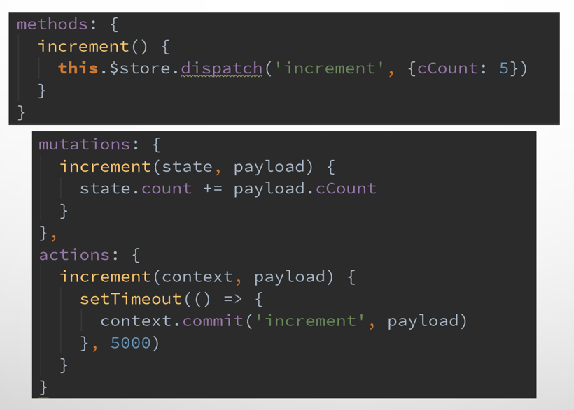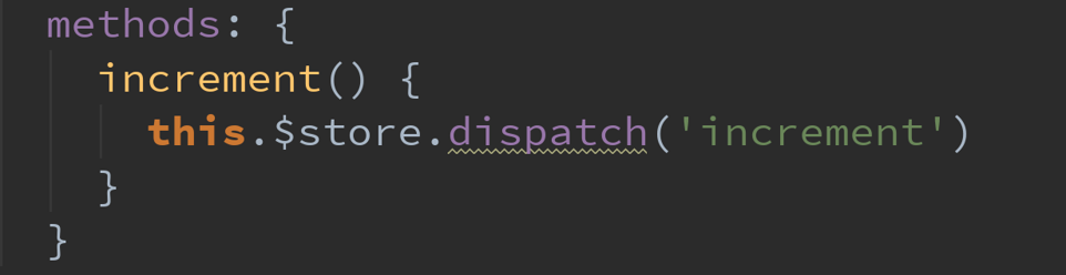 在Vue组件中, 如果我们调用action中的方法, 那么就需要使用dispatch