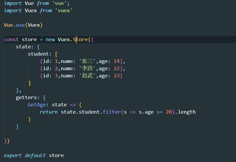 有时候,我们需要从store中获取一些state修饰后的状态,比如下面的Store中:
