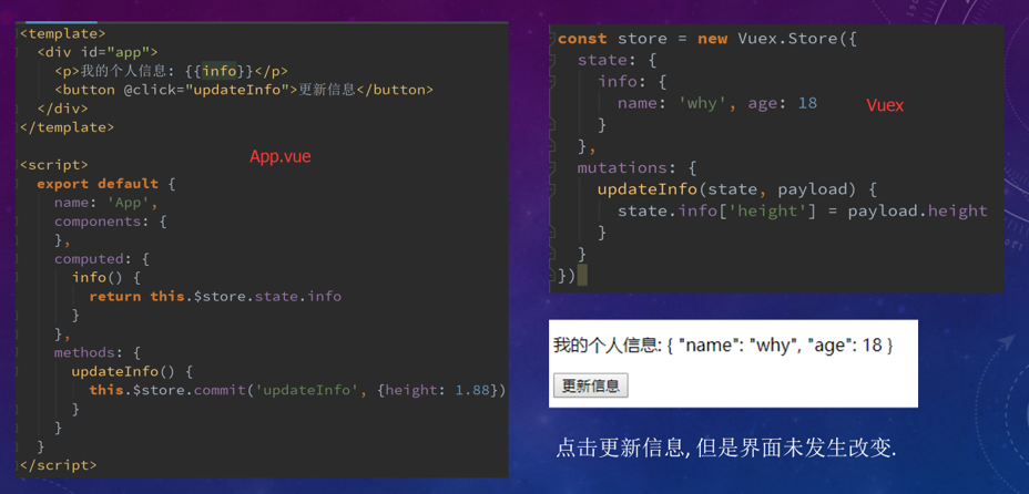 Mutations里面的函数必须是同步操作,不能包含异步操作!