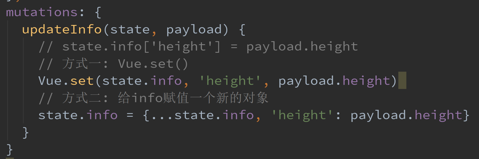 通过this.$store.commit(‘mutation中方法’)来修改状态